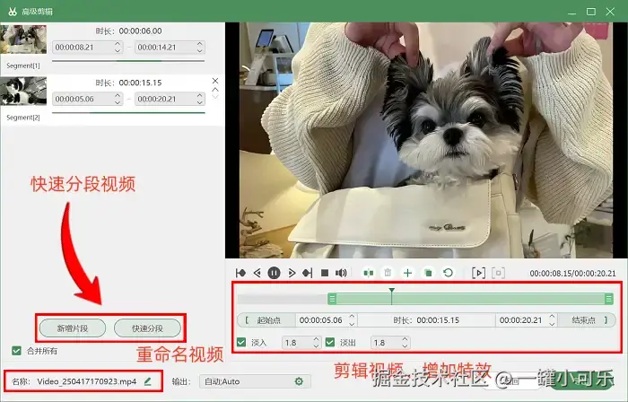 步骤3:录制结束后,软件会自动跳转至预览界面,你可以直接检查视频的画面流畅度、音质清晰度是否达标。要是发现需要删减的片段,或是需要把视频拆分分段,无需退出软件,直接点击 “高级剪辑” 入口,就能在内置编辑器里完成。