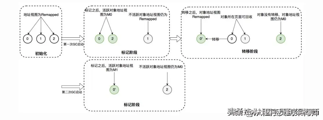 ZGC 的工作流程主要分为以下几个阶段: