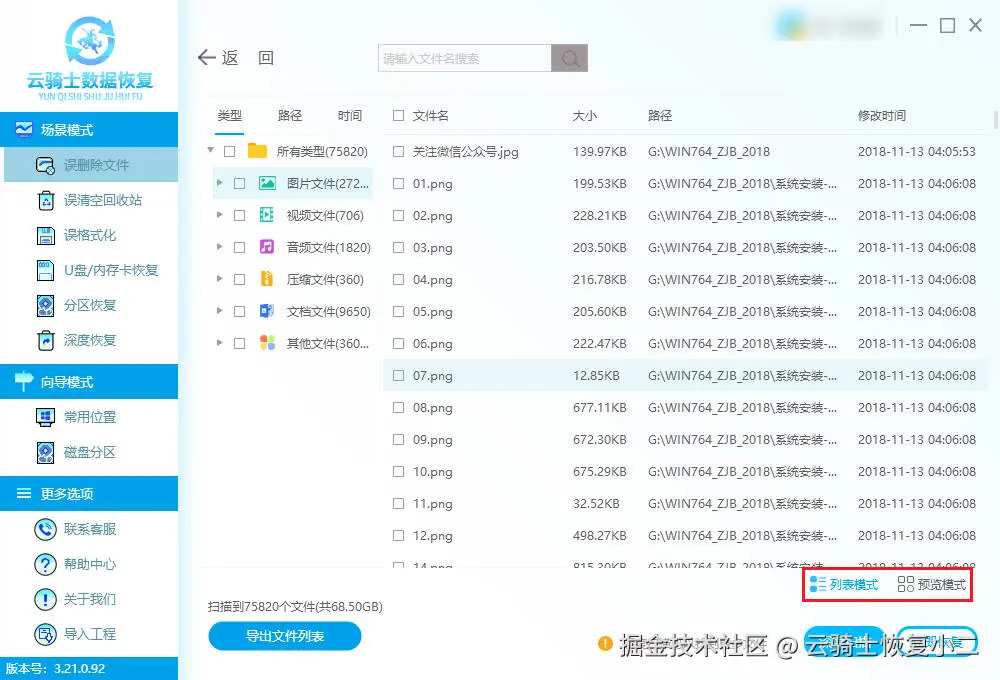 软件版本:云骑士数据恢复软件3.21.0.92