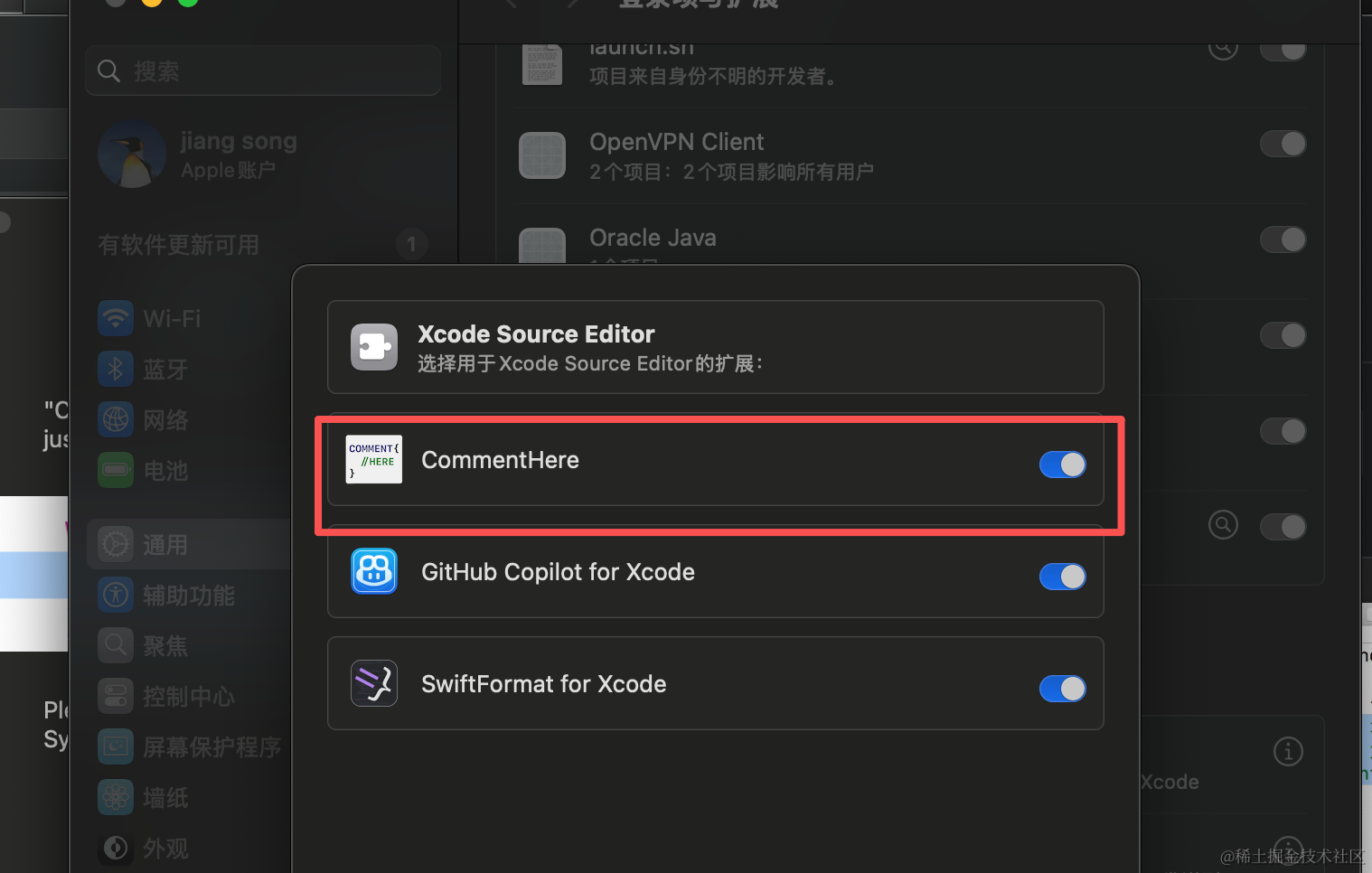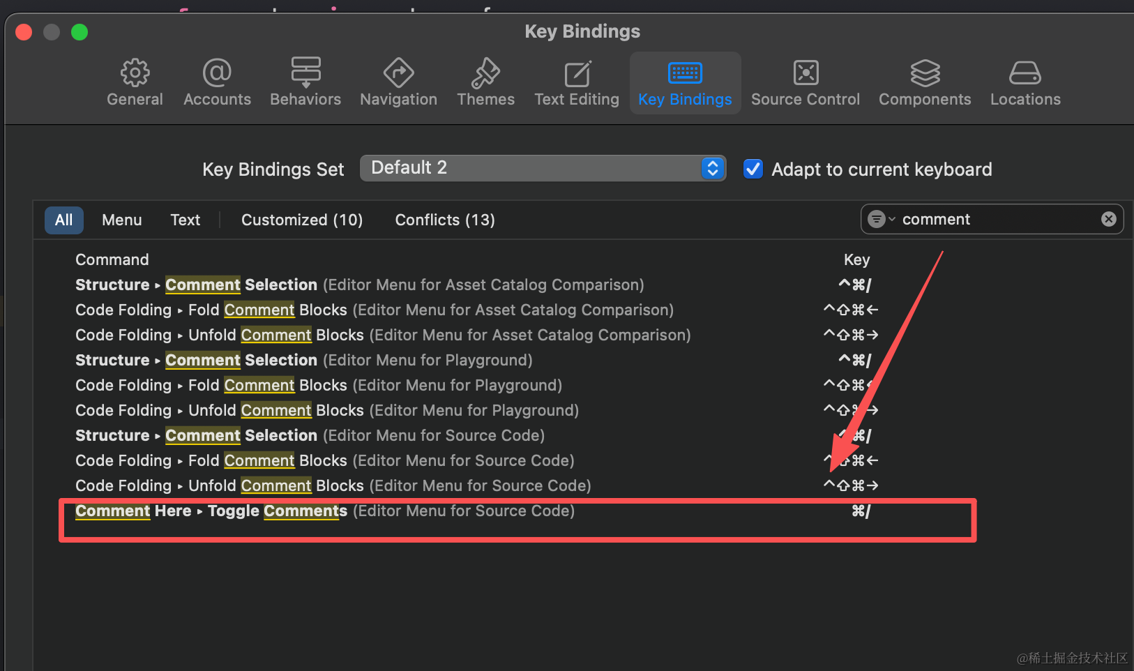 配置快捷键:在xcode设置中,将原本的注释快捷键改掉,然后将comment here的快捷键配置上去