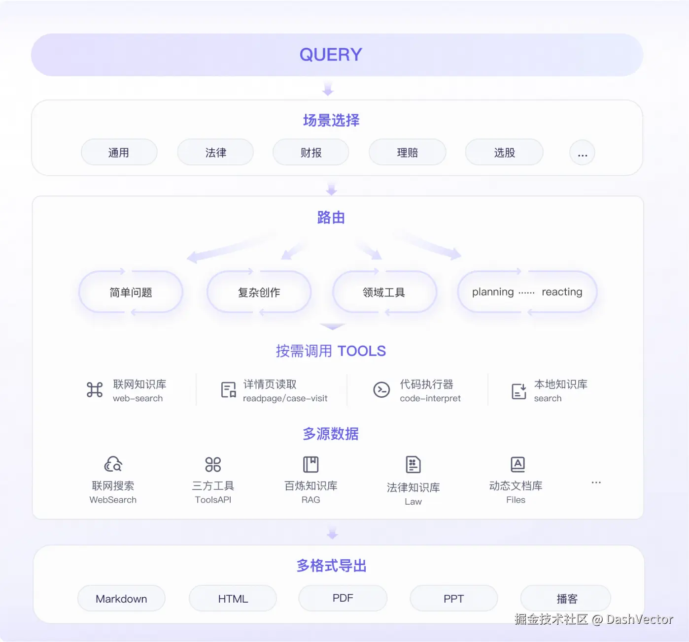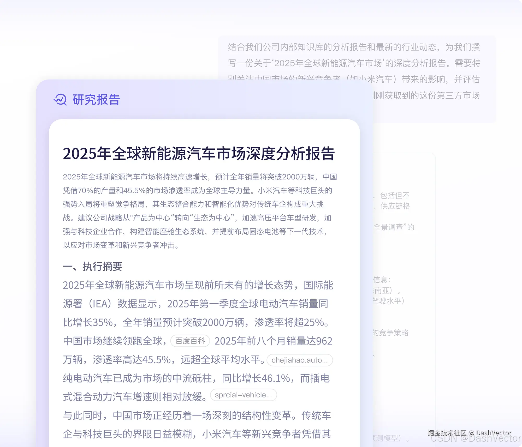 深度思考组织材料,生成有洞察、可溯源、图文并茂的长文报告,支持网页、播客多模态展示输出