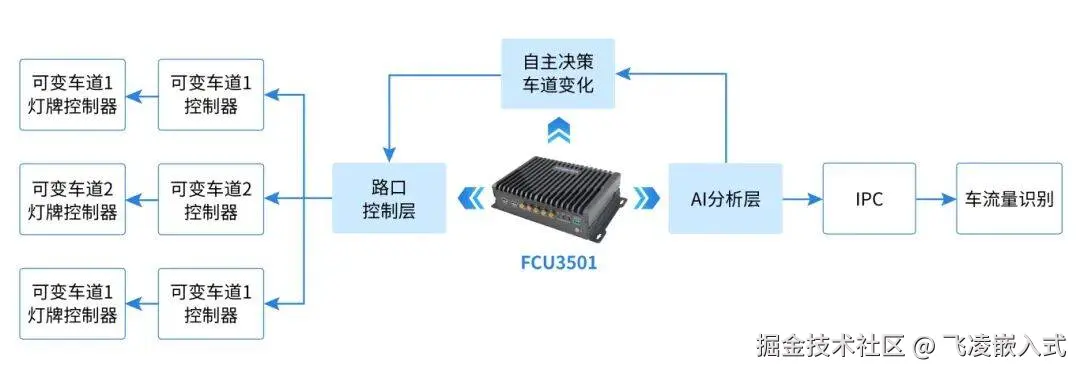 通过FCU3501 AI边缘计算盒子这样的边缘智能核心部署,智能可变车道的控制逻辑实现了根本性转变: