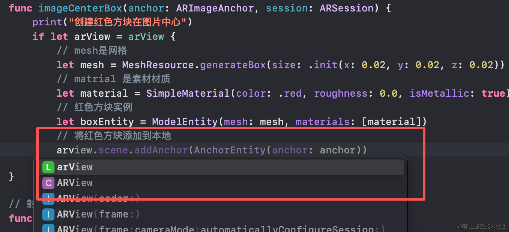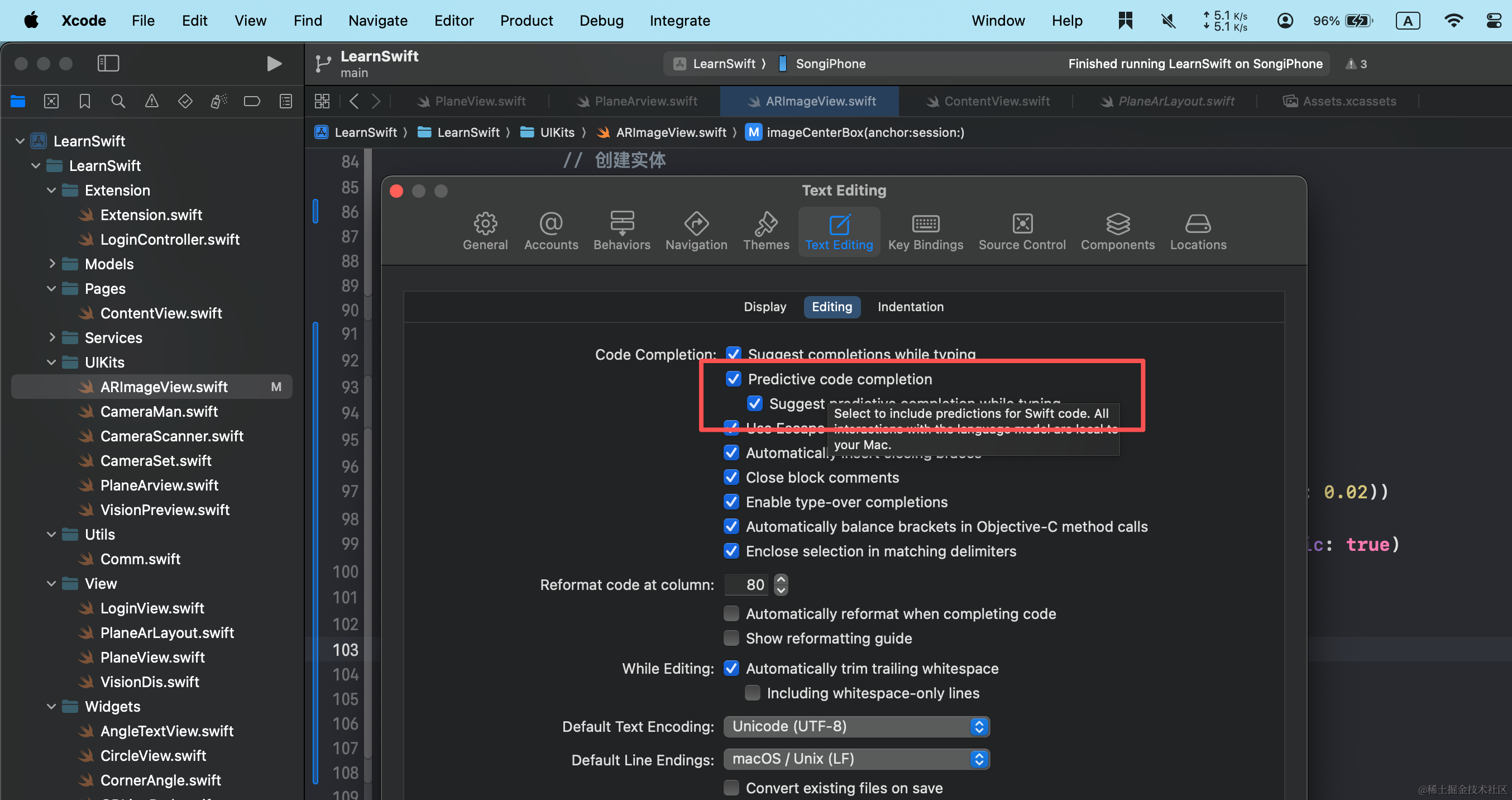 开启这个功能,就会提示需要下载一个2G的本地大语言模型,下载完成后重启xcode,写代码就会有提示。比如下面的示例: