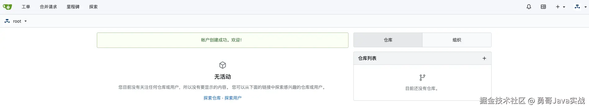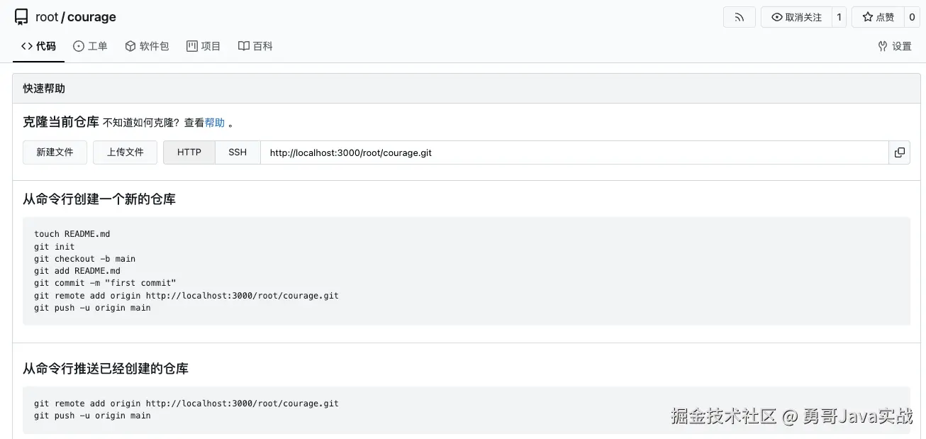 如图,创建仓库的界面和 Github 类似,输入仓库名,即可创建成功: