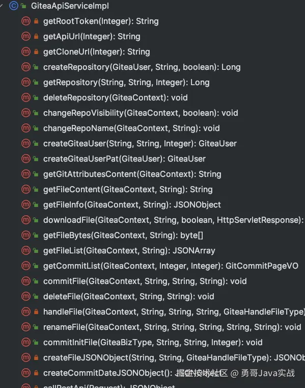 如图,我们可以将所有的 Gitea API 封装成如下的 Java 服务: