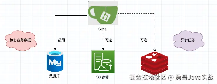 | 数据库(MySQL / PostgreSQL / SQLite) | ✅ 必须 | 存储核心业务数据:用户、仓库、Issue、PR、权限、LFS 元信息等 |