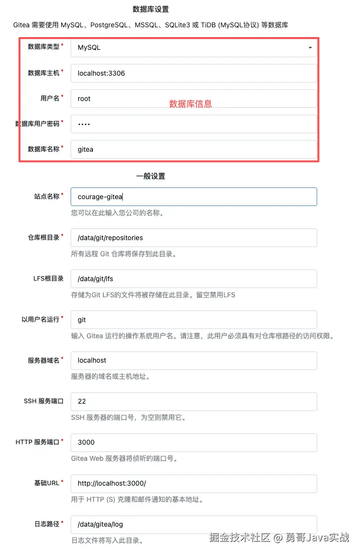 如图,我们配置了 数据库 Gitea ,然后点击立即安装 。