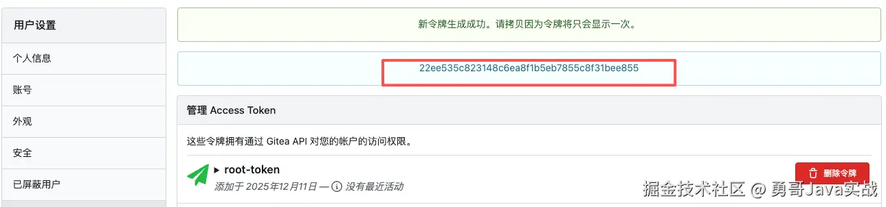 我们将令牌保存好,在克隆仓库时,或者 push 仓库时,需要使用该令牌。