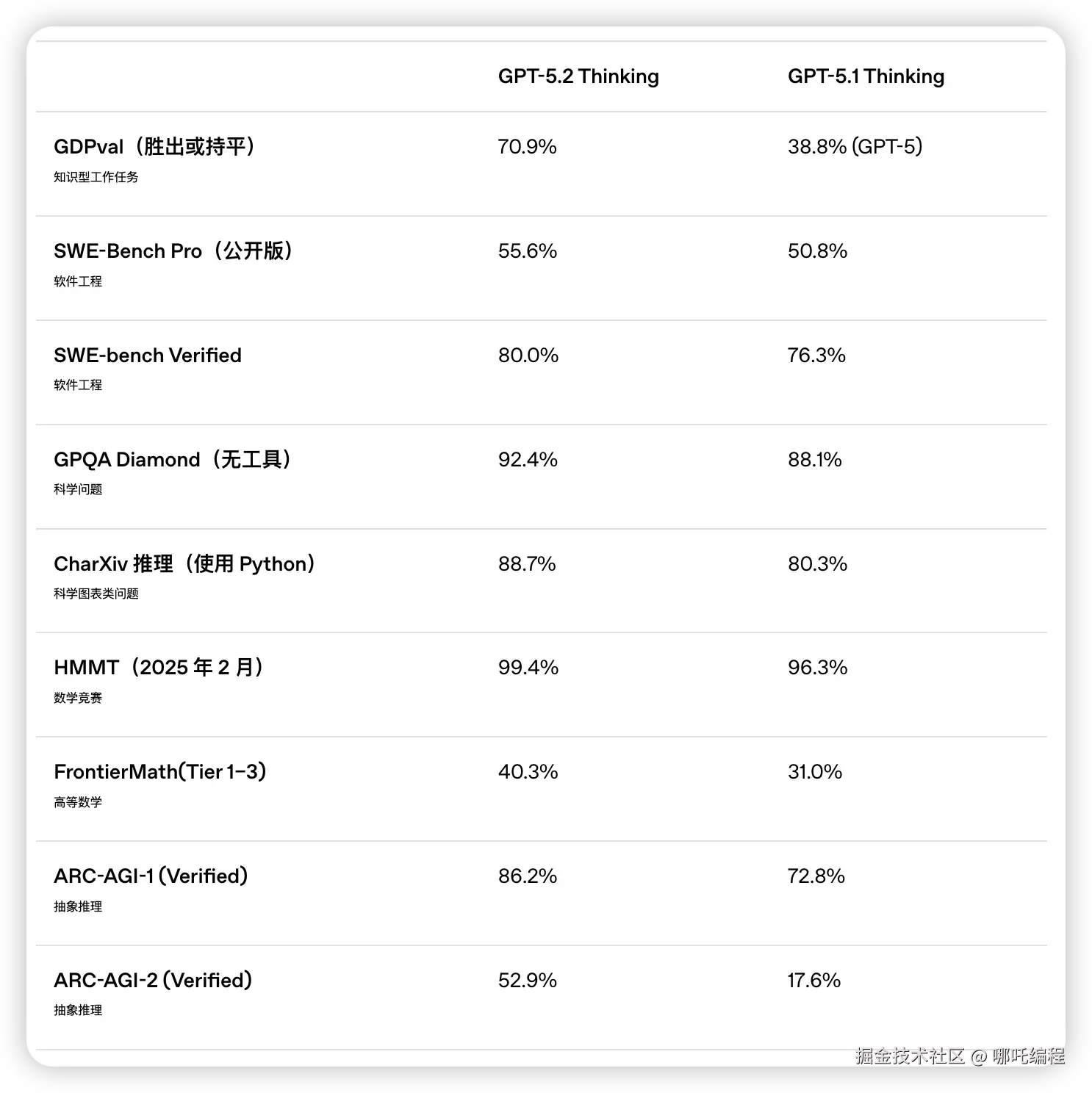 GPT-5.2 在编程能力上相比 GPT-5.1 有明显提升: