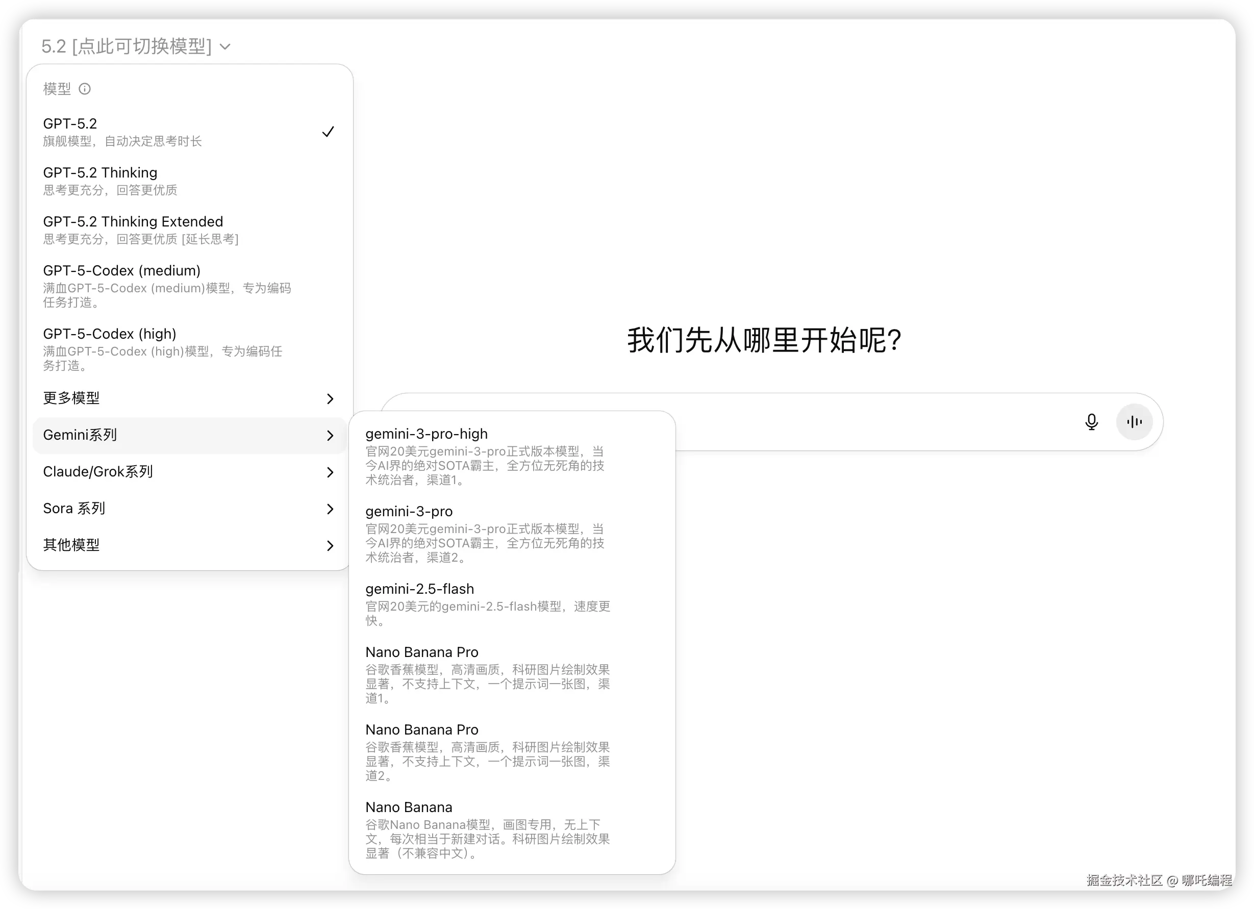 包含GPT-5.2、GPT-5.2 Thinking、Gemini 3 Pro、Nano Banana Pro、Claude Sonnet 4.5、Codex、Sora2、Grok4.1等模型。
