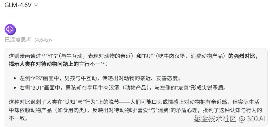 302.AI 现已接入 GML-4.6V 系列模型 API,本期实测将针对 GLM-4.6V 展开多维度的实测对比,直观感受其在多模态任务中的实际应用表现。