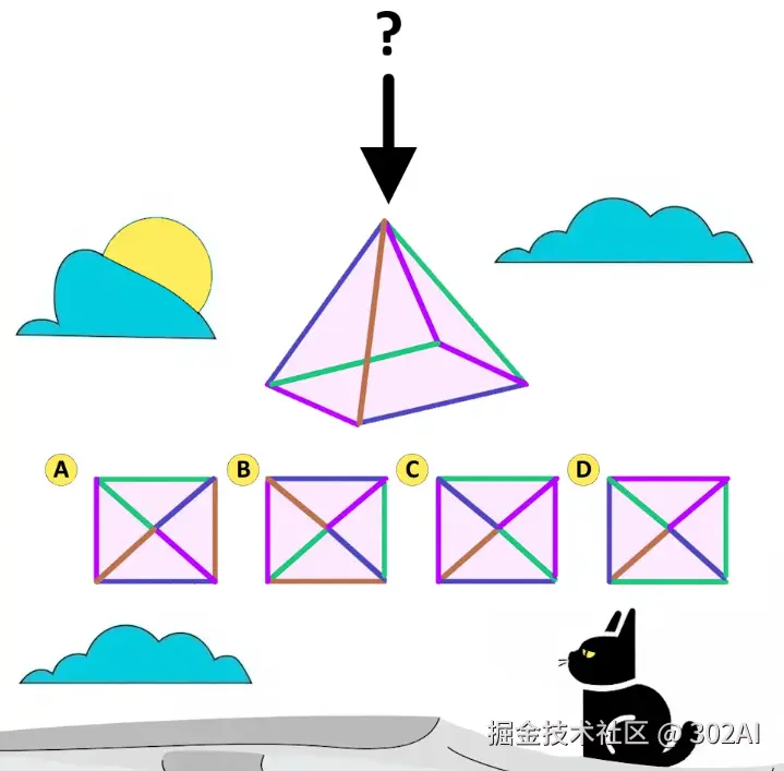 提示词:三维视角图形推断:请从ABCD中选出正确视角