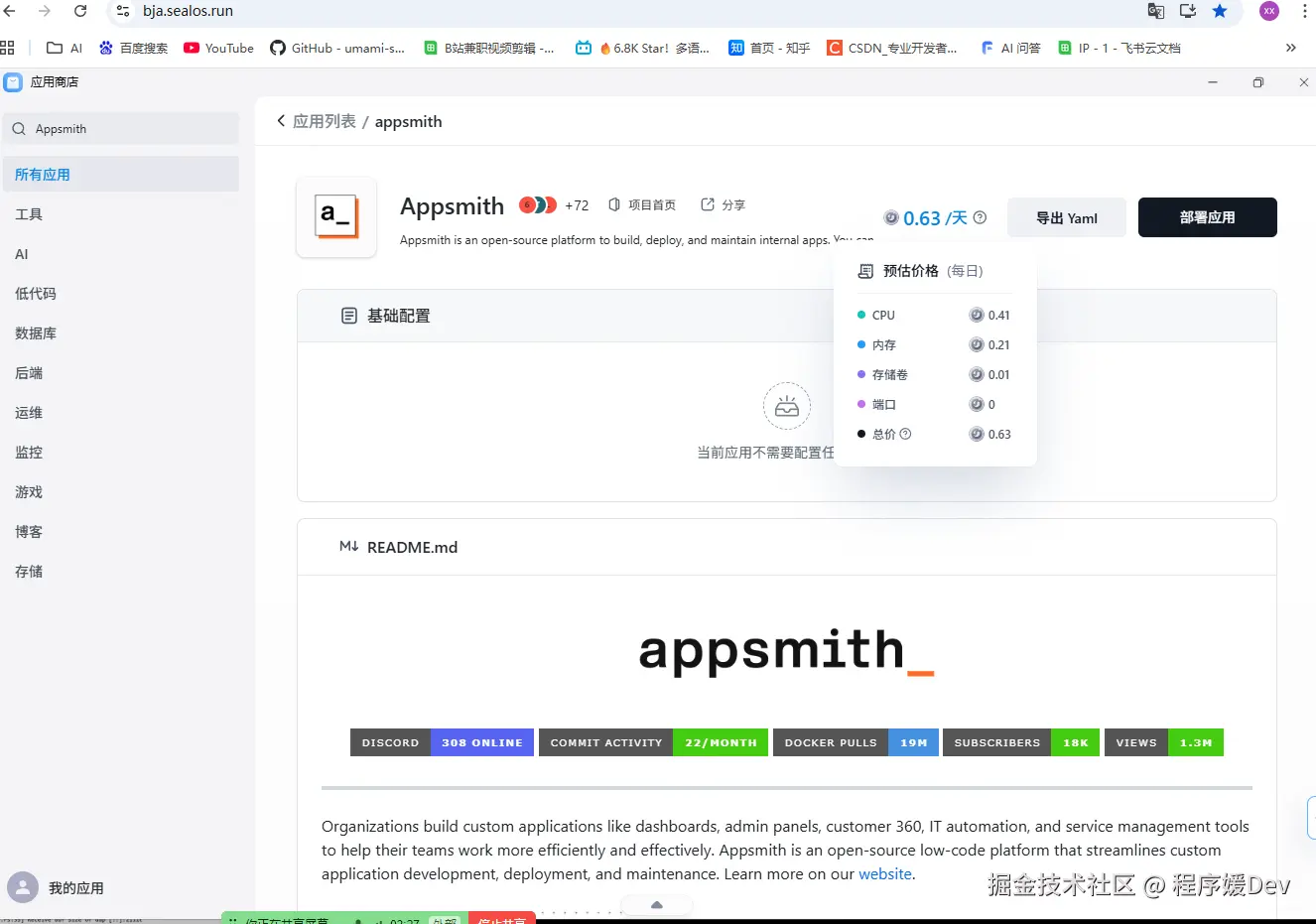 第二步:搜索“appsmith”