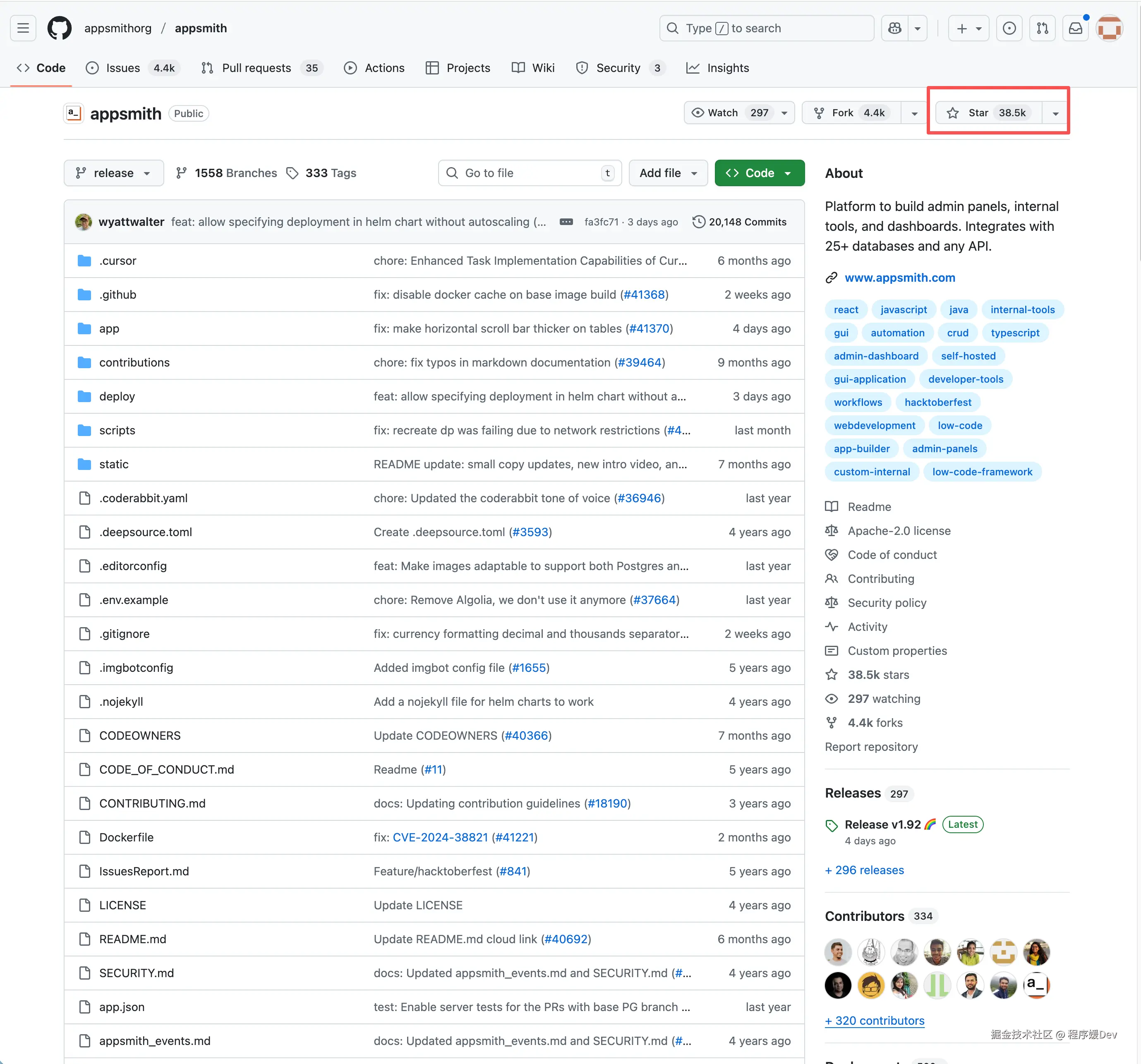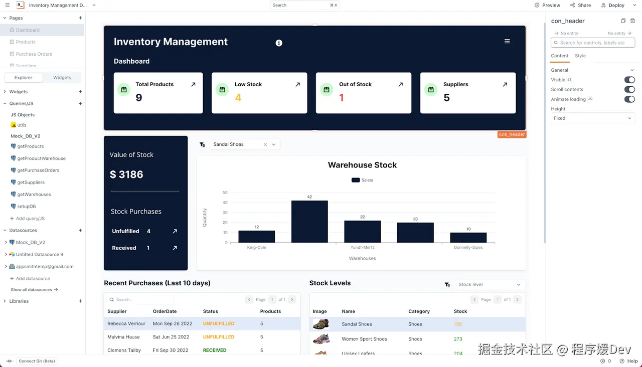 Appsmith是一个开源的低代码平台,专门用来快速构建内部工具、管理面板和数据看板。它在GitHub上已经获得了惊人的 3 8 . 4 k Star。