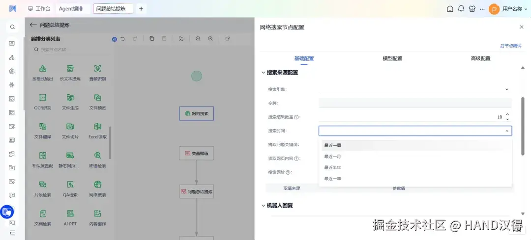 优化搜索体验 在利用网络搜索节点获取信息时,可以添加时间范围等过滤条件,提高搜索结果的时效性和相关性