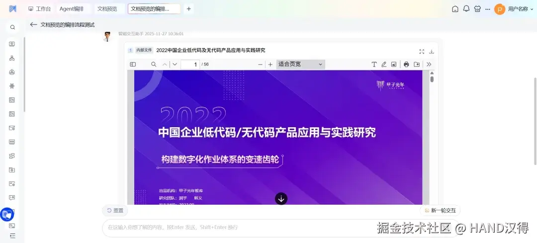 文件预览节点 可在交互过程中直接展示内外部文件的预览页面,支持弹窗、标签页、内嵌等多种预览模式。