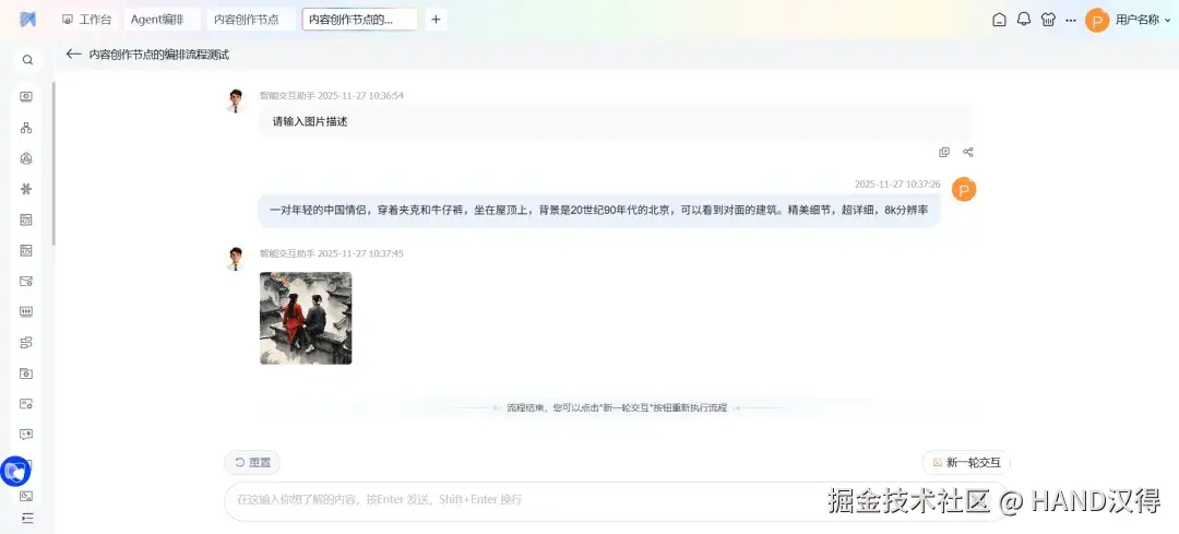 内容创作节点 赋予Agent“视觉创作”能力,支持文生图和图生图两种创作类型。