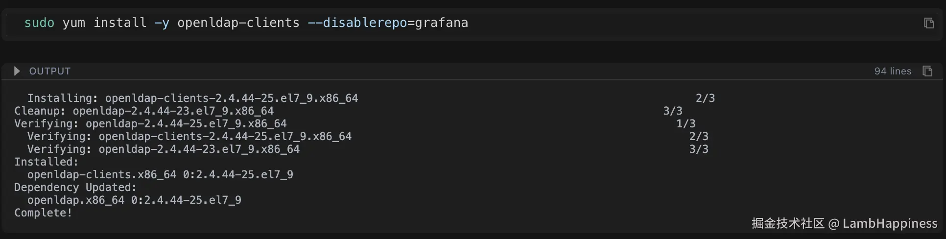 sudo yum install -y openldap-clients --disable repo=grafana