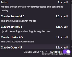 当然还有一个点,大模型的推理能力也是严重影响代码的质量,在Kiro中现在是一些主流的Claude,也是直接推荐Claude Sonnet4.5或者Claude Opus4.5