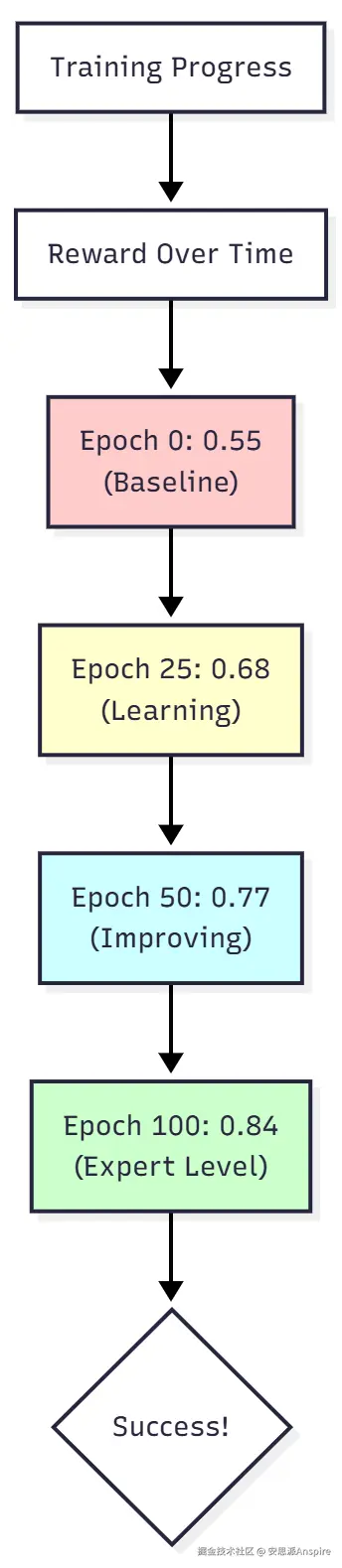 Epoch 100: Avg Reward = 0.84 # Expert-level performance!