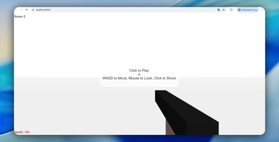 没有花哨的特效,界面简陋得像 90 年代的 Flash 游戏,颜色也是最基础的黑白灰。但它稳稳当当地执行了“第一人称射击”的指令,没有报错,没有崩溃。