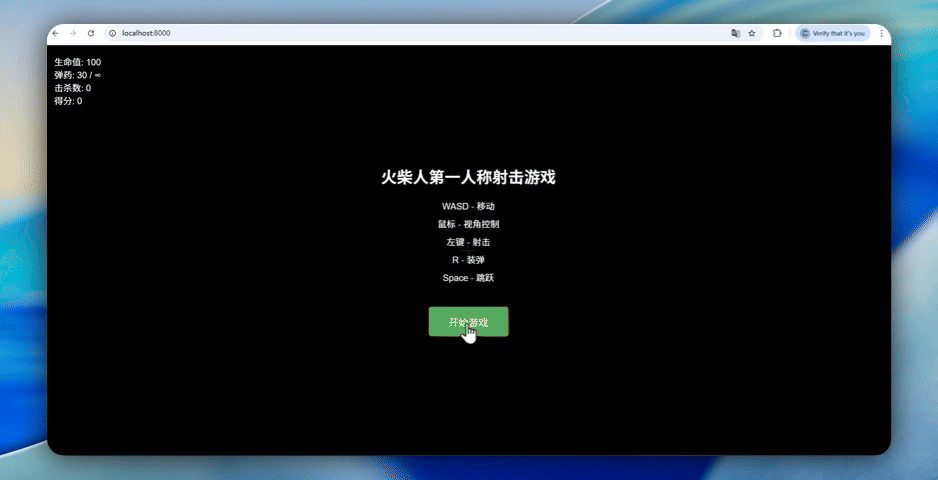 “你是一个资深全栈游戏开发工程师。请在当前目录下创建一个新文件夹,写一个火柴人第一人称射击游戏,并直接帮我完成所有构建工作。”