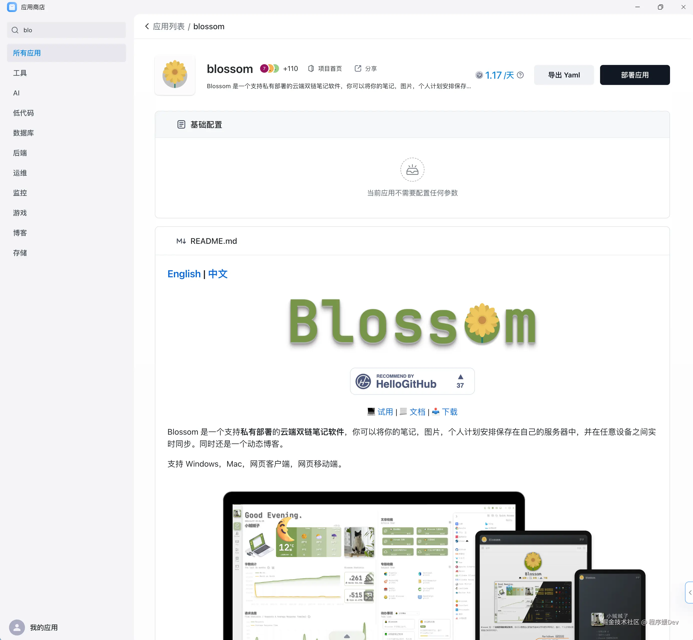 Blossom 是一款轻量、美观的开源私有博客和笔记应用。它在国内开发者圈子里颇受欢迎,GitHub Star数已达 3.7 k。