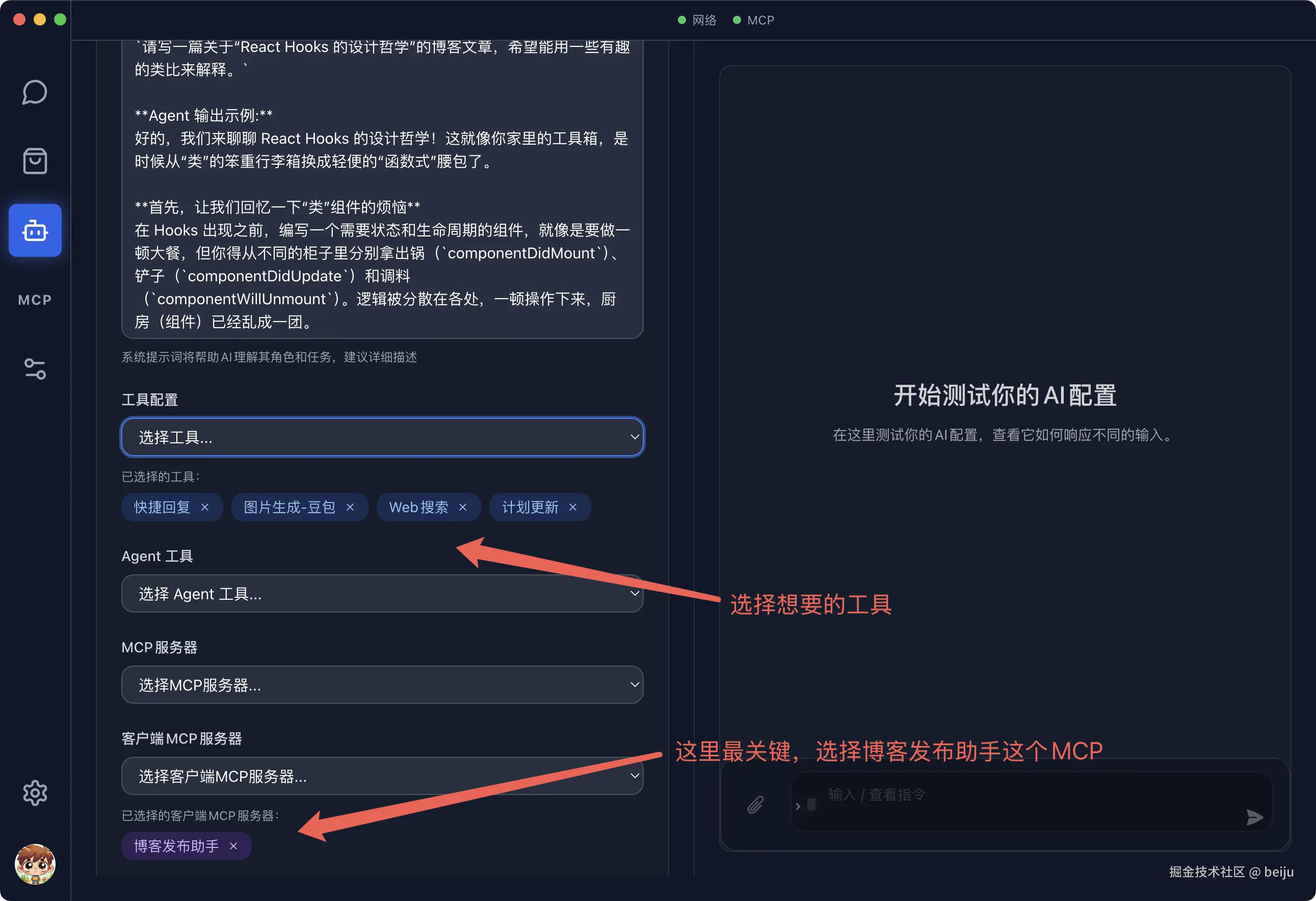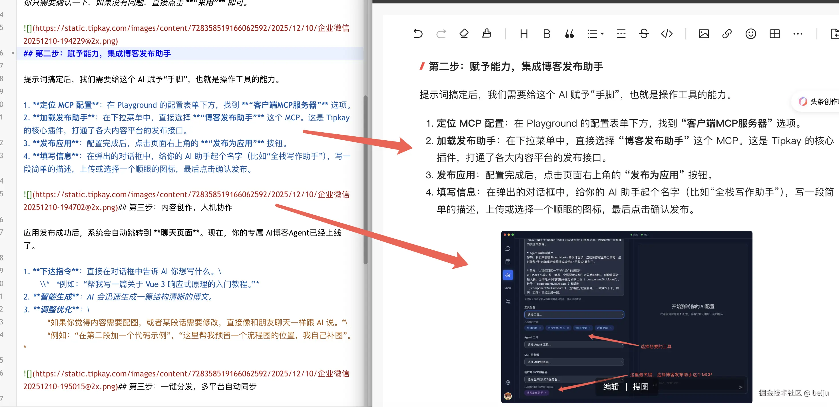 传统的 AI 写作工具只管“生”,不管“养”(发布)。Tipkay 则通过强大的 MCP(模型上下文协议)扩展能力,打通了 AI 与内容平台之间的墙。