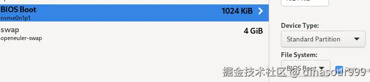 保留系统默认的启动分区(通常为 /boot 或 ESP 分区),不对其进行修改,然后按照以下要求创建其他分区: