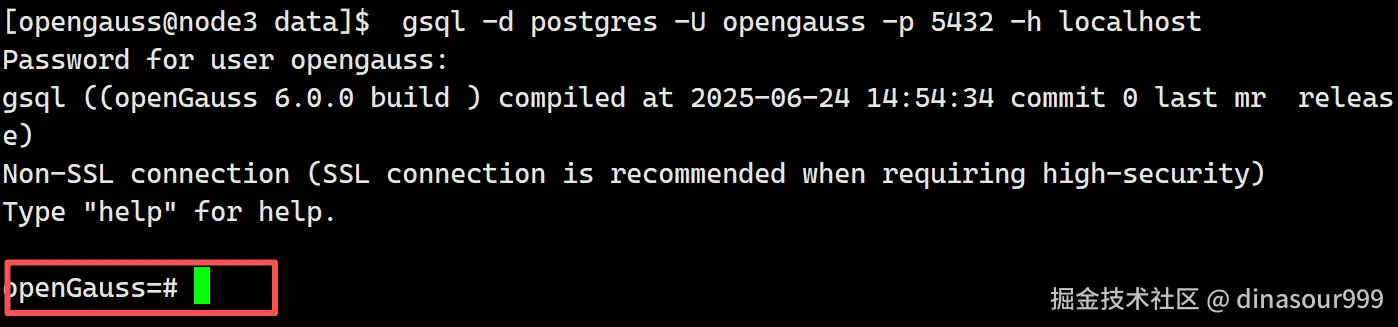 gsql -d postgres -U opengauss -WopenGauss@0000