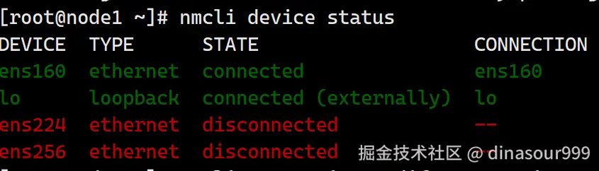 nmcli device status # 查看所有网络设备状态 nmcli connection show 也可以