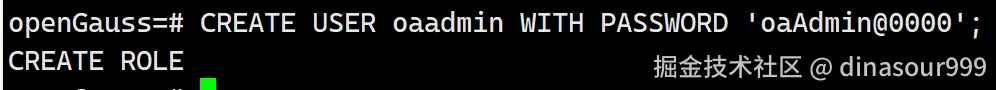 CREATE USER oaadmin PASSWORD 'oaAdmin@0000';