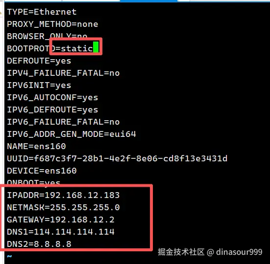 vim /etc/sysconfig/network-scripts/ifcfg-ens160 网卡看自己的是什么:ens160