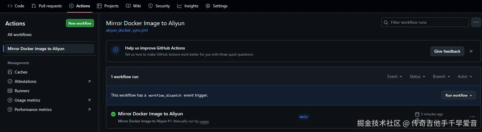 通过这个方法,我们实际上是利用 GitHub Actions 搭建了一个 “私人的 Docker 镜像加速通道”。