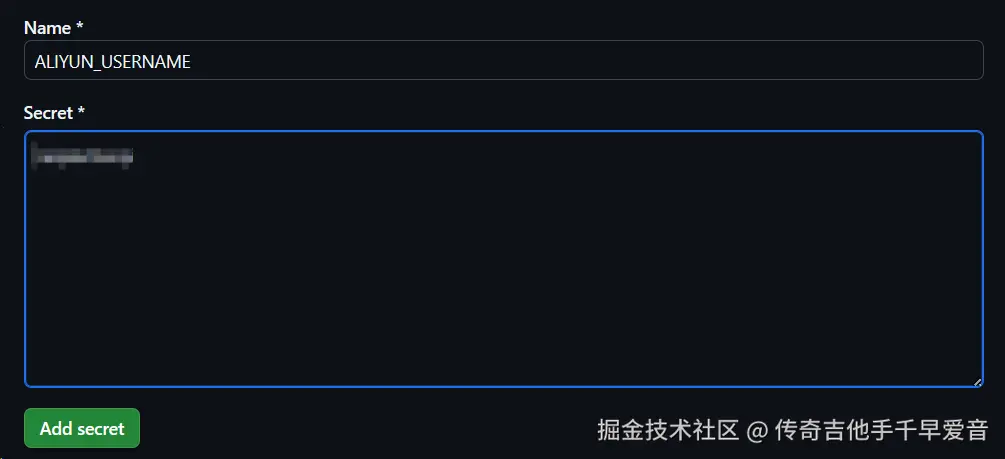 填写后点击Add secret按照下图添加,添加以上四个Secret。