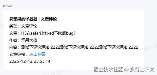 如果有博友在你的文章下面进行了评论,那么你将会收到下面提醒,可以点击文章链接快速跳转去回复!