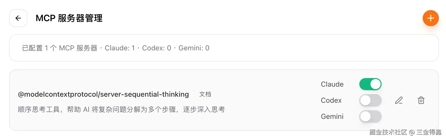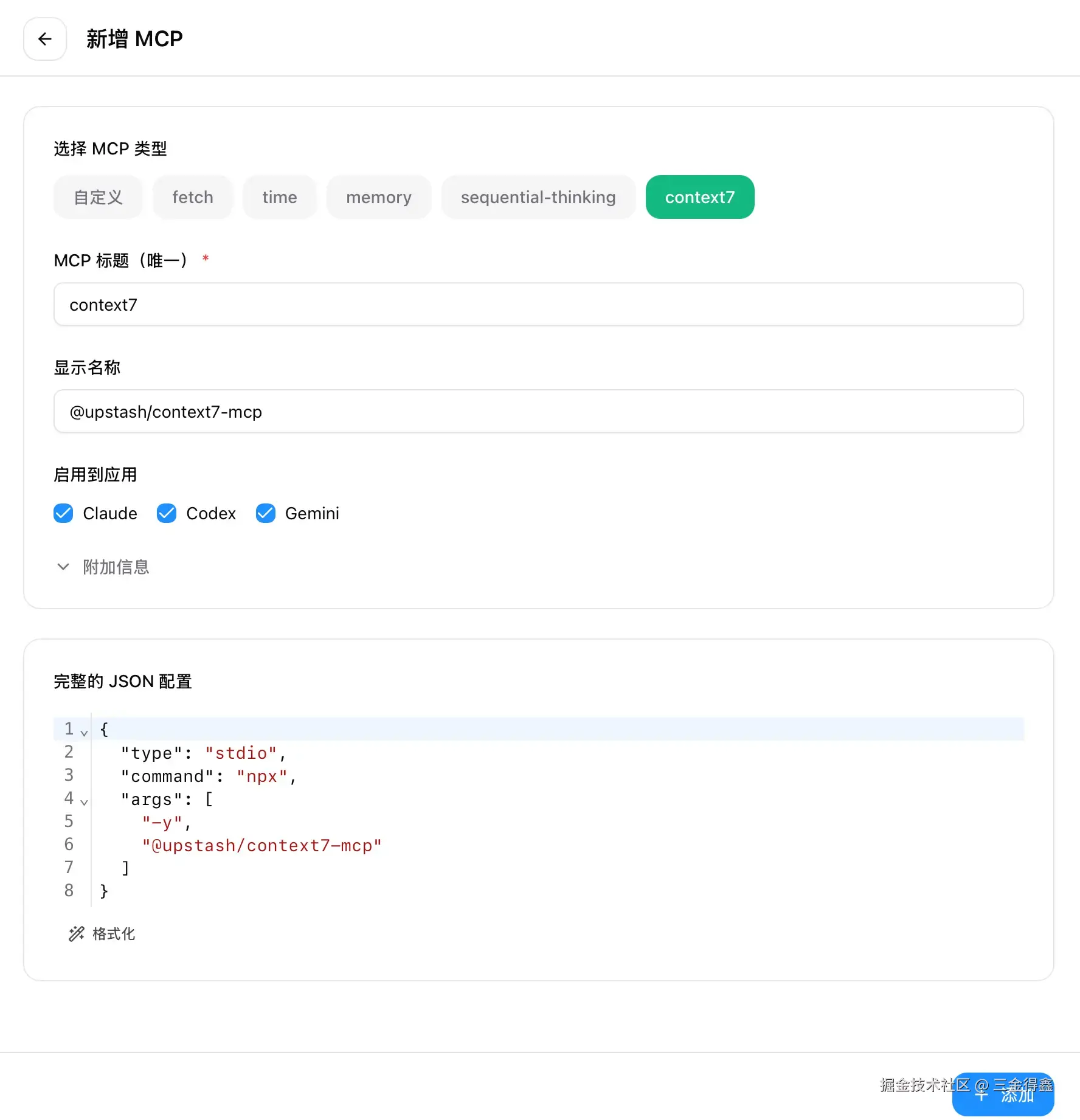 点击右上角的 + 号,让我们添加一个 context 的 MCP 进来: