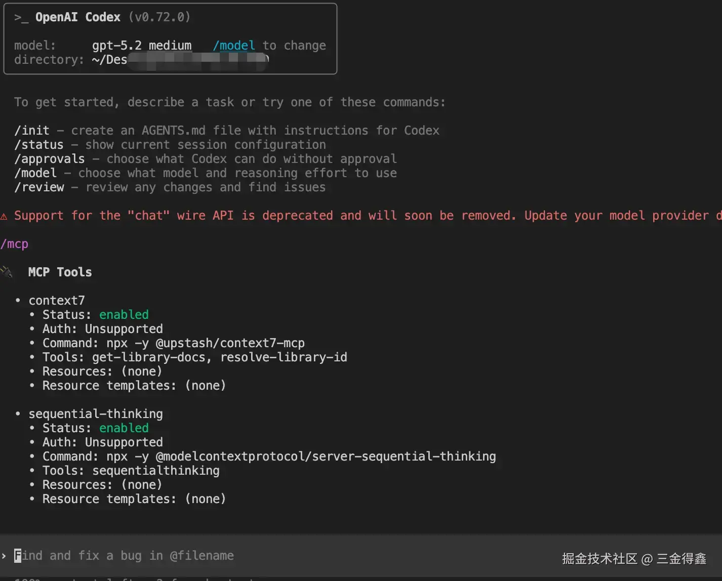 点击启用后,让我们打开 codex 来测试一下: