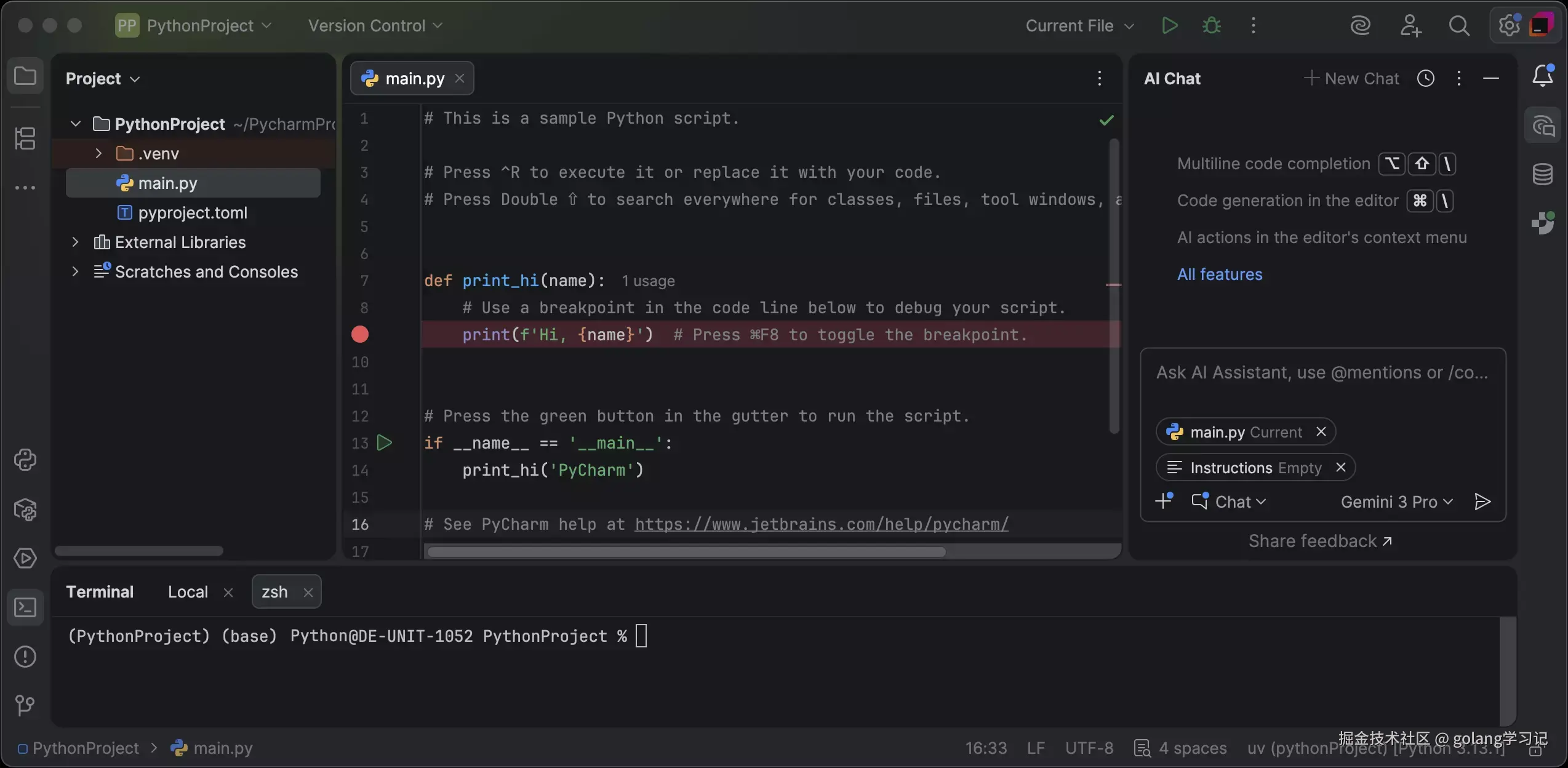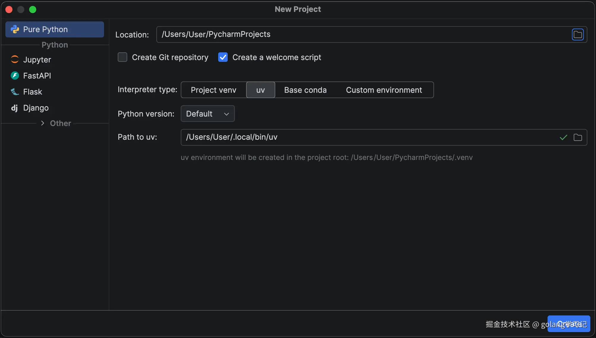 uv 由 Astral 开发,是 Rust 编写的超高速 Python 包安装器 & 环境管理器(比 pip 快数十倍),现被 PyCharm 官方“钦定”: