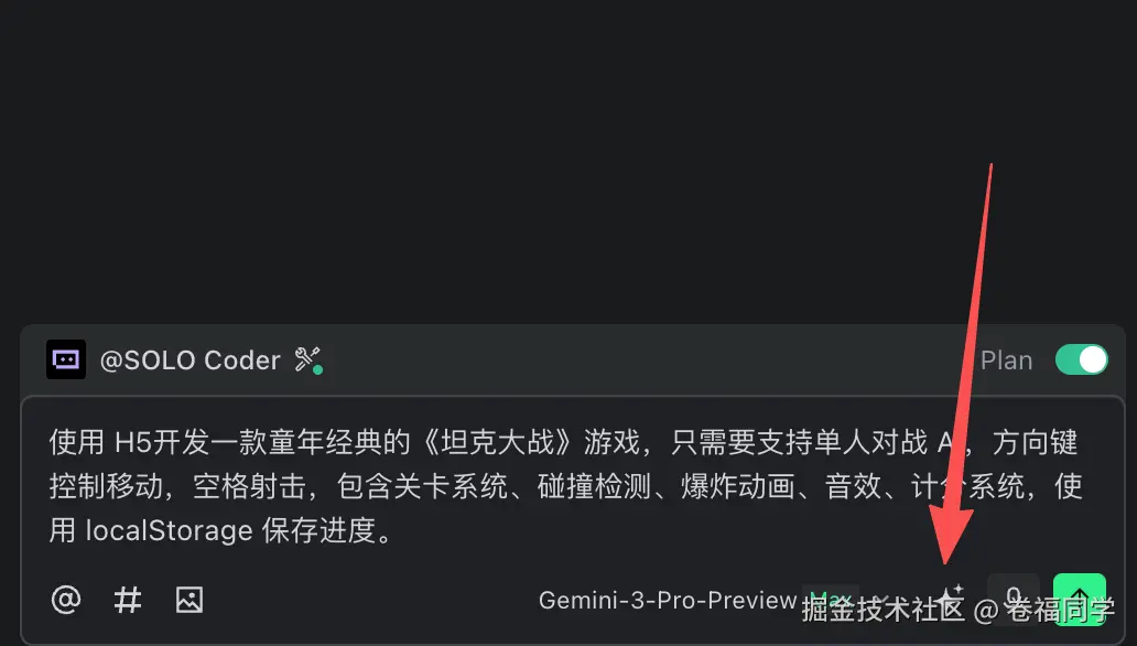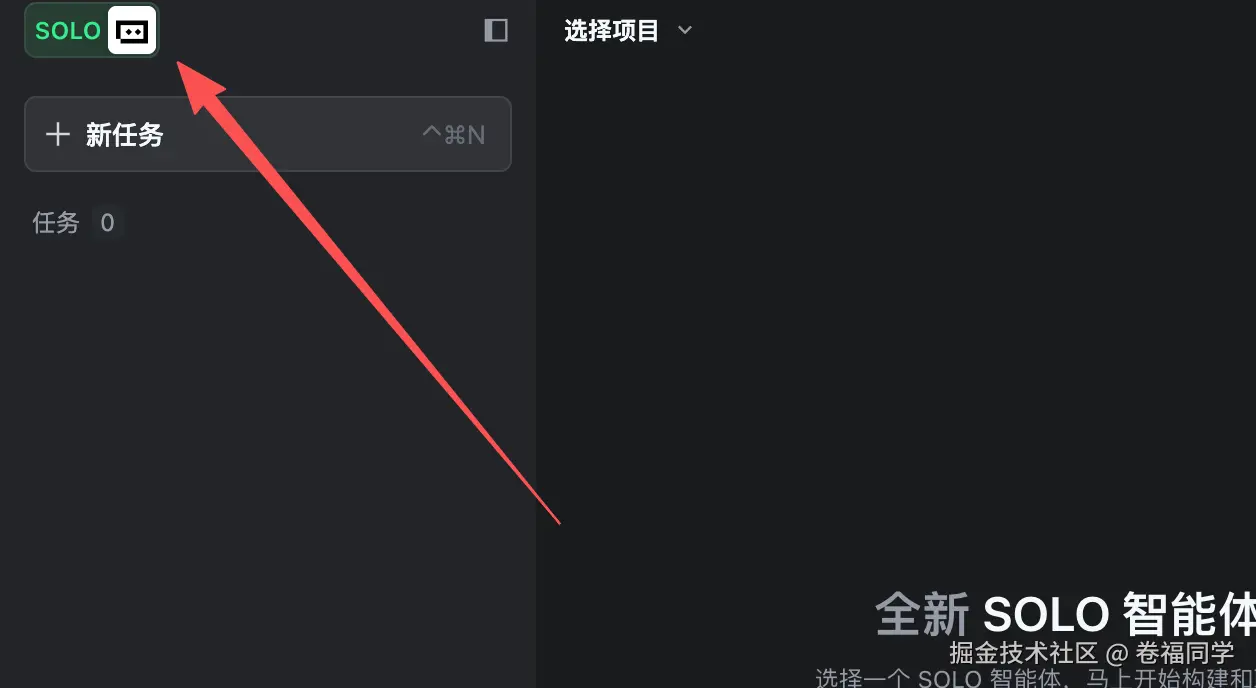首先打开Trae的solo模式,在左上角的位置