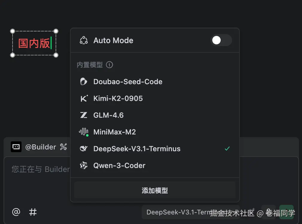 国际版和国内版Trae的区别主要是使用的模型不同