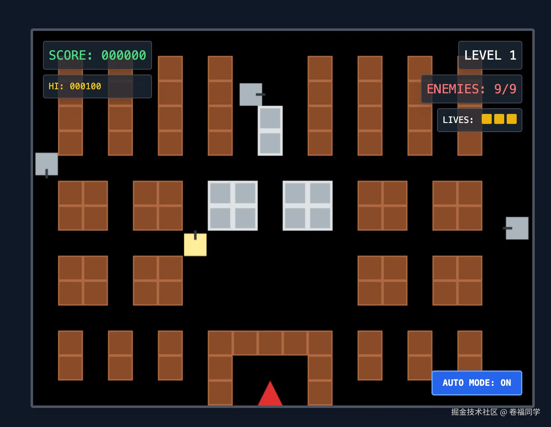 现在AI编程工具已经能做到一句话的需求生成一个完整的项目了,今天我们用Trae solo来试着复刻小时候的游戏《坦克大战》,并且部署上线,下面是演示效果和地址: