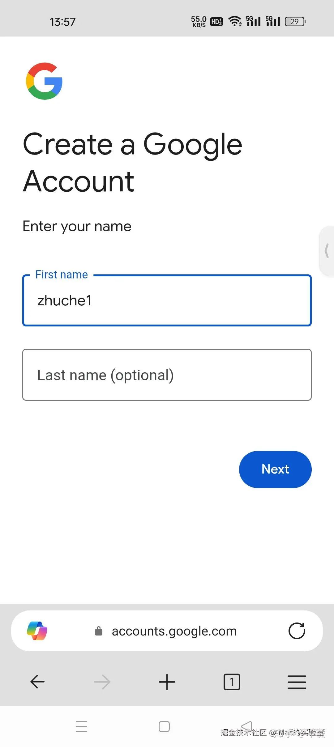 4.打开谷歌网址,点注册,注册流程大家都知道的,尽量账号邮箱的那一块设置复杂一点,英文加数字。