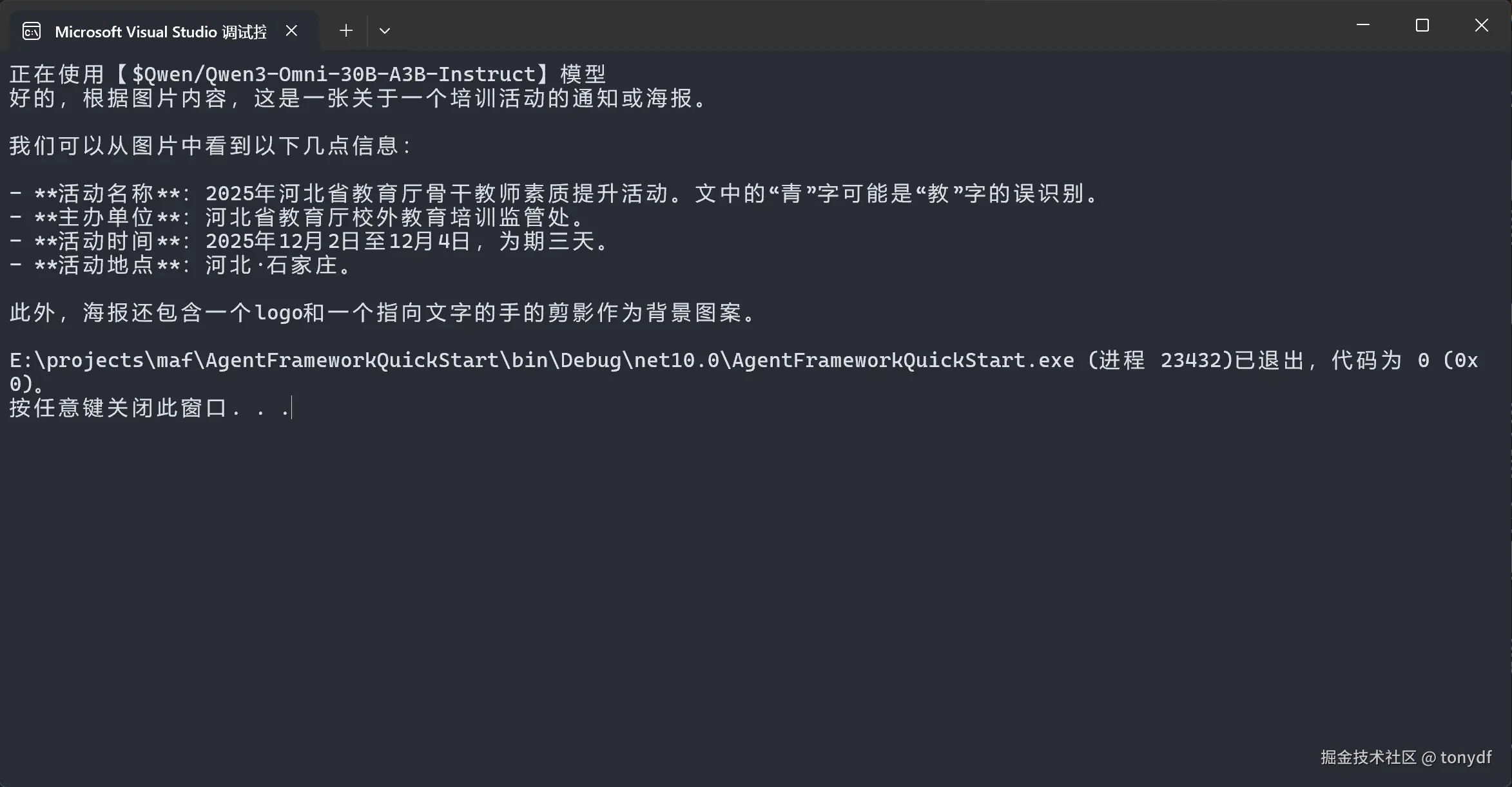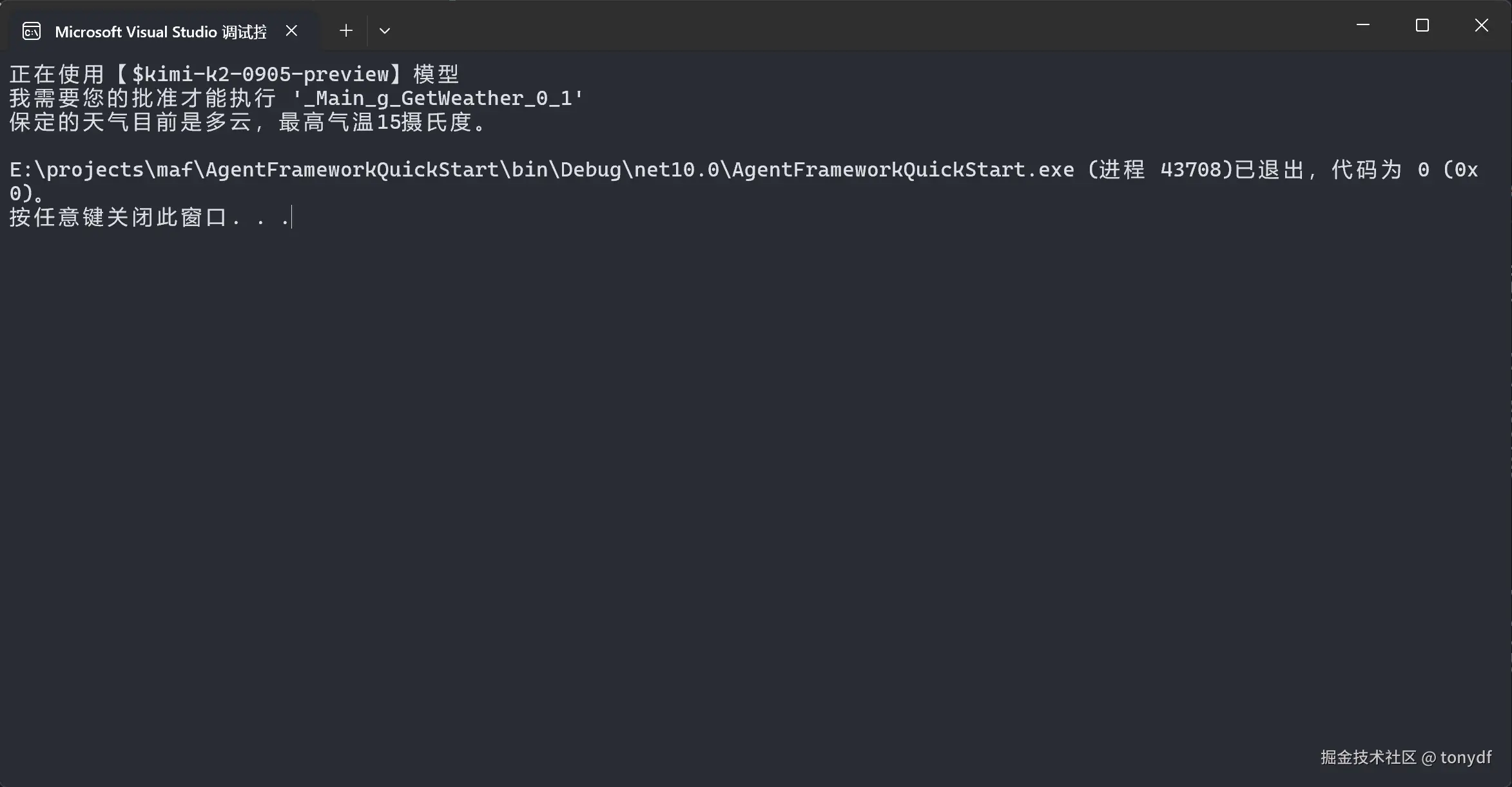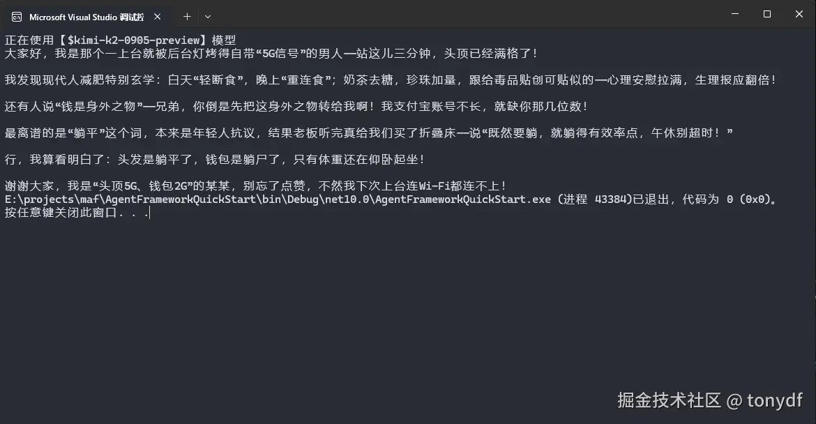 好了,本次我就跑了这几个案例,感觉还是非常不错的。微软通过 MAF 提供了一条清晰的技术路径,让我们这些开发者也能轻松构建属于自己的“智能助手”。