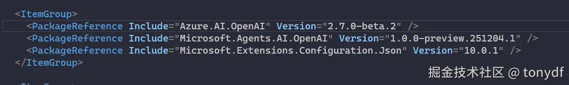 另外,我今天(2025.12.13)使用命令行安装的 Azure.AI.OpenAI的版本是2.8.1-beta.1,这个版本是有问题的,这个版本里依赖的OpenAI这个包和上级包有冲突,我是在IDE里手动将版本号上移了一个版本(2.7.0-beta2)才解决,如果大家刚好看到这里,然后也遇到相同问题的话,可以尝试参考一下
