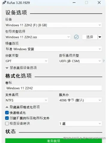 Rufus:免费、开源、轻量、功能强大、更新快。支持 UEFI/Legacy BIOS 模式,支持各种 ISO 和 DD 镜像格式。 官网:rufus.ie