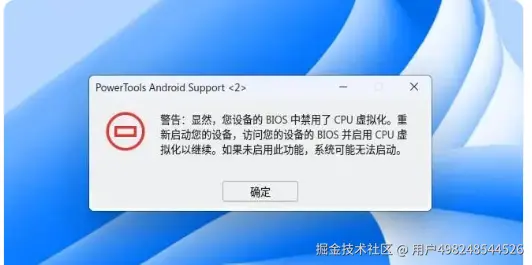 注:如未开启CPU虚拟化,会提示报错,如下图所示;