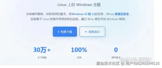 首先我们进入的是Winux官网(winuxos.org),然后点击免费下载。