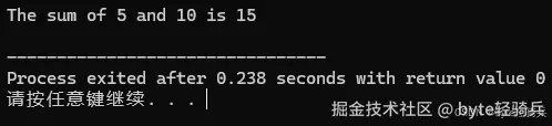 // 全局变量(虽然在这个例子中并没有真正使用到全局变量) // 但为了对比,可以想象一下如果这里定义了一个全局变量会如何 // 调用函数,并传递局部变量作为参数 calculateSum(5, 10);return 0;}