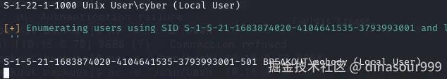 使用命令 enum4linux -a 192.168.58.134命令对这个网站扫描,扫出用户名cyber
